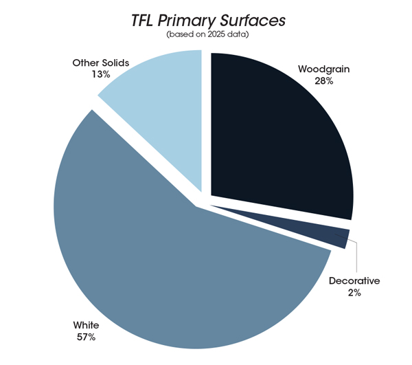 TFL decorative panels are a go-to solution for furniture, cabinetry, closet systems, retail fixtures, and laminate flooring where performance and design meet due to their outstanding scratch, stain, and wear resistance. With highly realistic textures and exceptional visual consistency that can replicate any trending design, including solid wood and stone, TFL panels deliver durable, design-forward designs that enhance residential and commercial spaces alike.