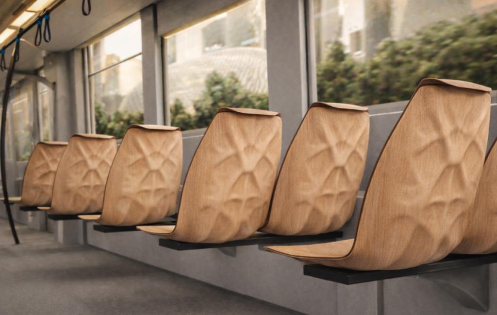 From train interiors to long-span structural elements, Strong by Form is pushing wood far beyond its traditional performance limits. Rather than relying on material substitution alone, the company unlocks structural efficiency through geometry optimisation, fibre architecture and proprietary forming processes, enabling wood-based composites to enter performance domains typically reserved for mineral or synthetic materials.