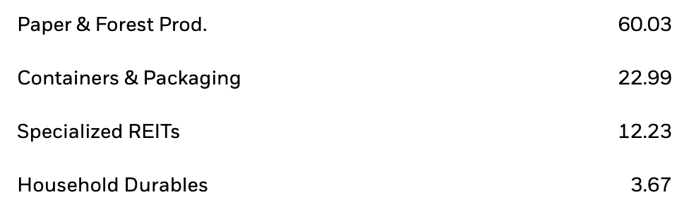 Given the fund has “Timber & Forestry” in its name, one might expect it to be a pure-play timer fund, though even the sector breakdown gives