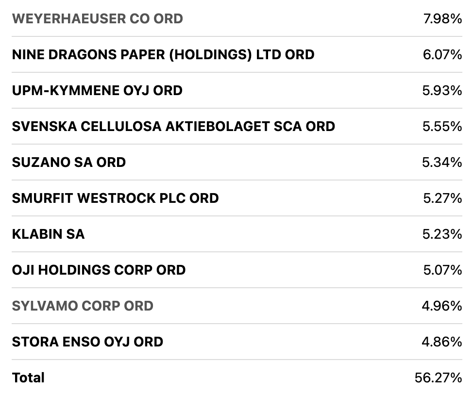 WOOD Top 10 Holdings (Seeking Alpha)